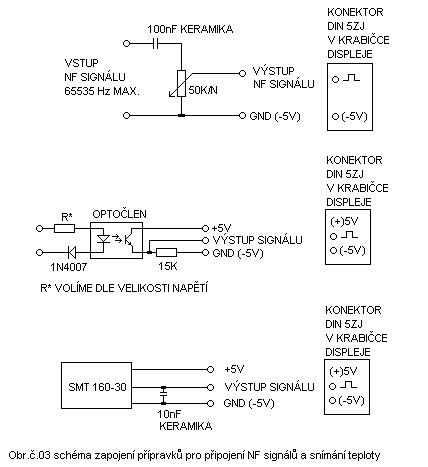č.03 je schéma možného zapojení přípravků pro měření frekvence a teploty. MAXIMÁLNÍ VSTUPNÍ