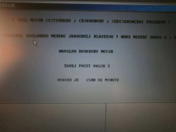 Program OTÁČKY.EXE po spuštění programu zvolím sériový port kde je připojený přípravek volbu portu volíme stiskem klávesy s číslicemi 1 – 4. stiskem klávesy s číslicí „1“ volíme sériový port COM1, stiskem klávesy s číslicí „2“ volíme sériový port COM2 atd. Po volbě portu zvolíme zda se budou měřit otáčky na čtyřdobém motoru nebo dvoudobém motoru tuto volbu volíme stiskem klávesy „C“ nebo „D“ stiskem klávesy s písmenem „C“ volíme čtyřdobý motor, stiskem klávesy s písmenem „D“ volíme dvoudobý motor. Po volbě motoru zadáme jako další položku počet válců a stiskneme klávesu ENTER., na monitoru počítače se poté již zobrazuje naměřená hodnota otáček motoru. Pokud stiskneme během měření jakoukoliv klávesu MIMO KLÁVESY ESC můžeme si znovu zvolit čtyřdobý motor nebo dvoudobý kde zadáváme parametry motoru stejně. Pokud stiskneme klávesu ESC program se ukončí. V případě že je program spuštěn pod OS DOS nastavíme si systémový čas na správnou hodnotu pod OS WINDOWS XP, WINDOWS 2000, WINDOWS NT, WINDOWS 7 čas nastavovat nemusíme.