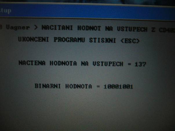 Program je odladěn v Turbo Pascalu a je součástí adresáře CD4021 má název vstup.exe jde spustit pod OS DOS,pod OS Windows 95/98 po restartu PC a volbě klávesou F8 pouze DOS nebo z příkazové řádky.Pod operačními systémy Windows 2000 XP/NT,Windows 7 jde spustit pouze z příkazové řádky pokud jsou tyto řádně nainstalovány ve 32-bitové verzi.Po spuštění programu volíme sériový port kde je připojený převodník ten volíme stiskem klávesy 1 až 4,stiskem klávesy s číslicí 1 volíme port COM1 stiskem klávesy s číslicí 2 volíme port COM2. a atd.Po volbě portu a s připojeným převodníkem pokud připojíme na vstupy OP1 až OP7 kladné napětí,se již na monitoru zobrazí desítková hodnota vstupu a současně i binární hodnota vstupu,program ukončíme stiskem klávesy ESC.