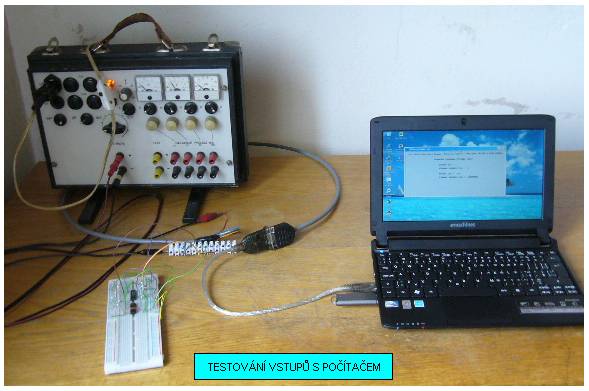 Program je odladěn v Turbo Pascalu má název test.exe slouží pouze k odzkoušení vyrobeného převodníku,jde spustit pod OS DOS,pod OS Windows 95/98 po restartu PC a volbě klávesou F8 pouze DOS nebo z příkazové řádky.Pod operačními systémy Windows 2000 XP/NT jde program spustit pouze z příkazové řádky pokud jsou tyto řádně nainstalovány pouze ve 32-bitové verzi.Po spuštění programu volíme sériový port kde je připojený převodník ten volíme stiskem klávesy 1 až 4,stiskem klávesy s číslicí 1 volíme port COM1 stiskem klávesy s číslicí 2 volíme port COM2. a atd.Po volbě portu a s připojeným převodníkem pokud připojíme na vstupy OP1 až OP7 kladné napětí,se již na monitoru zobrazí desítková hodnota vstupu a současně i binární hodnota vstupu,program ukončíme stiskem klávesy ESC.