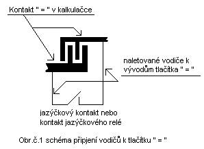Úprava spočívá pouze v naletování a vyvedení vodičů od tlačítka „ = „ vně kalkulačku kde tyto vodiče zakončíme v zásuvce pro konektor Jack apod.Z kalkulačky vyjmeme baterie a kalkulačku rozebereme zjistíme si pozici tlačítka „ = „ a k němu vedoucích přívodů na DPS tyto na vhodném místě opatrně očistíme od laku a v jejich těsné blízkosti vyvrtáme otvory 0.5mm kterými prostrčíme vodiče a tyto opatrně přiletujeme na očištěná místa,naletované vodiče nesmí bránit při opětovné montáži DPS k tlačítkům a uzavření krytů kalkulačky.Tyto vodiče vyvedeme předem vyvrtaným otvorem v krytu kalkulačky,vodiče zakončíme v konektoru který přilepíme lepidlem na kryt kalkulačky,po úpravě kalkulačku smontujeme vložíme baterie kalkulačku zapneme odzkoušíme funkčnost obyčejným výpočtem tím je úprava kalkulačky skončena.