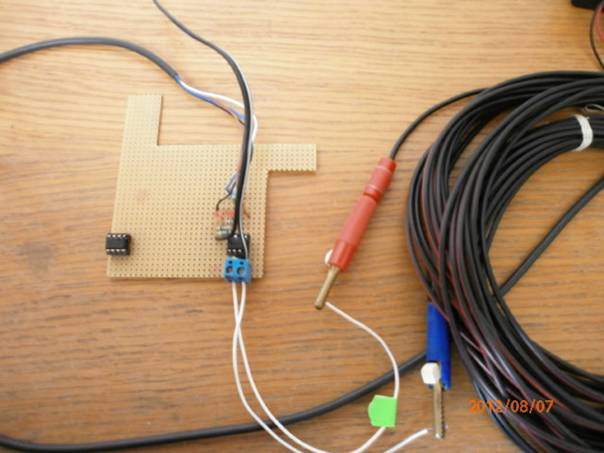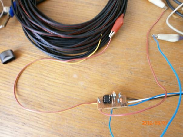druhý dokončený převodník na univerzální destičce propojovací testovací vodiče délka 20m,vodiče smotány.