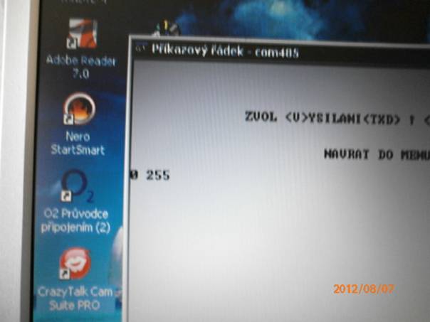 Při vysílání hodnoty v programu COM485.EXE je zadaná hodnota přímo zobrazena na monitoru počítače kde je připojený převodník.
