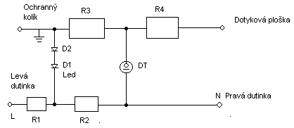 2.) přerušený PEN vodič : Led dioda nesvítí (ochranný kolík),při dotyku palce na plošku (hlavičku šroubku) svítí pouze doutnavka.