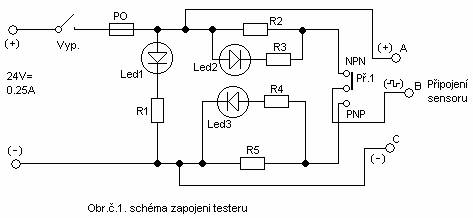 popsaný test je pro senzor který je při aktivaci spínací pokud hned svítí jedna z diod Led2 nebo Led3