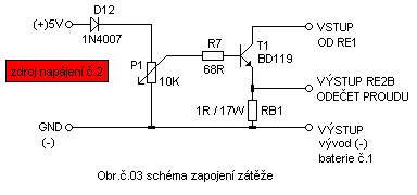 D12…1N4007 , R7….68R , P1….10K , T1….BD119 + chladič, BOČNÍK RB01….1R/17W (drátový rezistor),