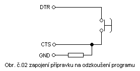 Program odečet.exe po spuštění programu zvolíme port kde je připojen přípravek volbu portu volíme stiskem klávesy 1 až 4,stiskem klávesy 1 volíme port COM 1 stiskem klávesy 2 volíme port COM 2 atd., současně aktivuje výstup DTR pro napájení přípravku dle zapojení obr.č.01, nebo pro napájení přípravku na odzkoušení programu dle obrázku č.02.